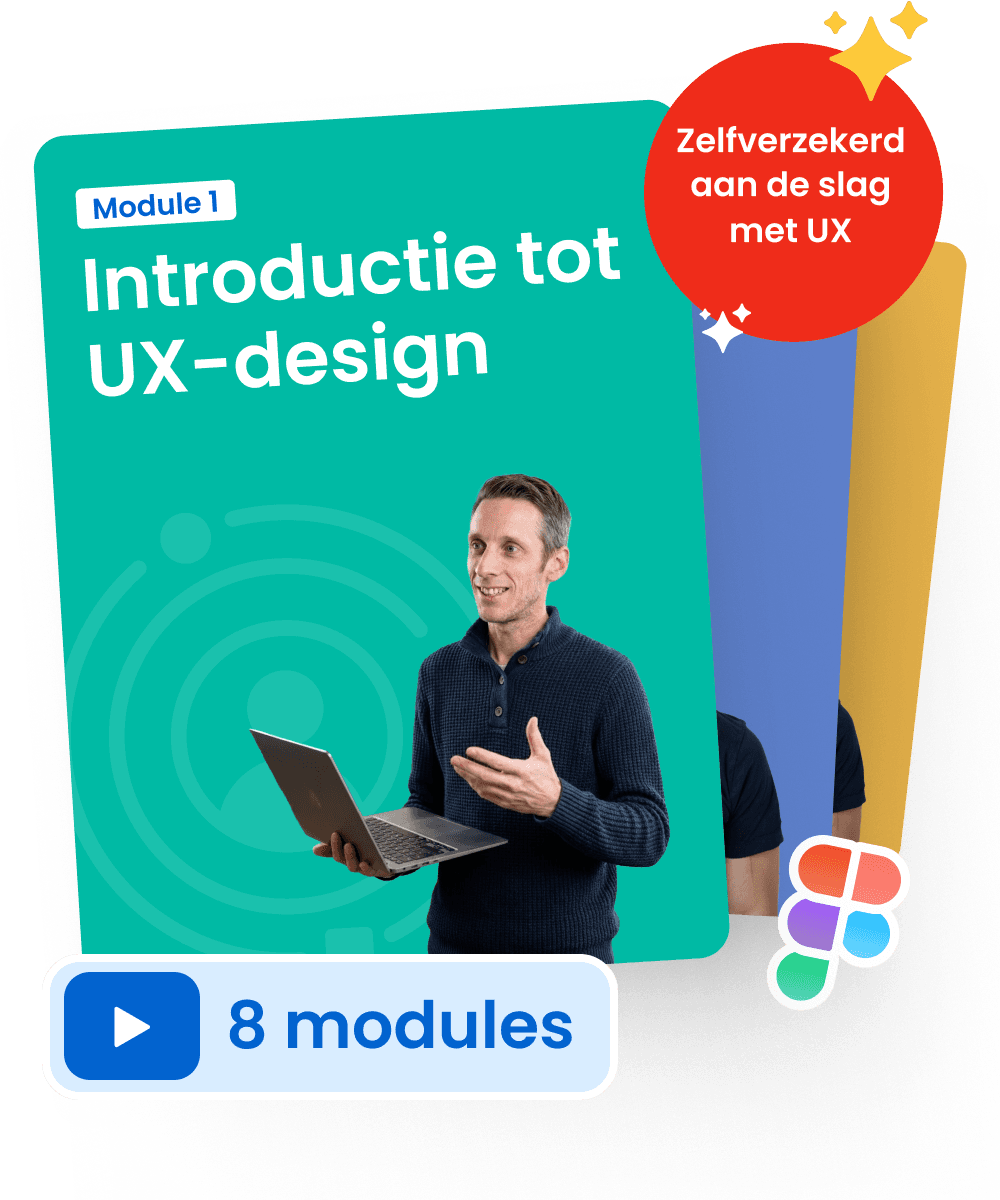 In 8 modules leer ik je alles wat je moet weten om je eerste stappen als UX-designer te kunnen zetten.