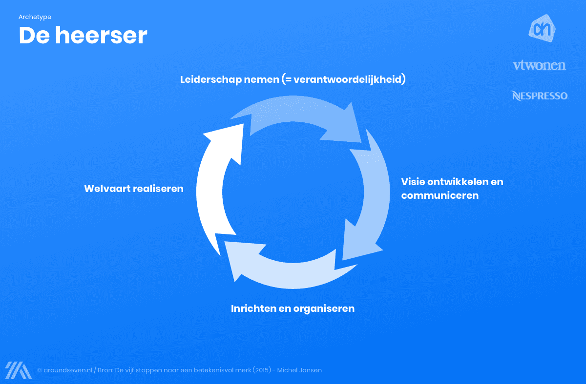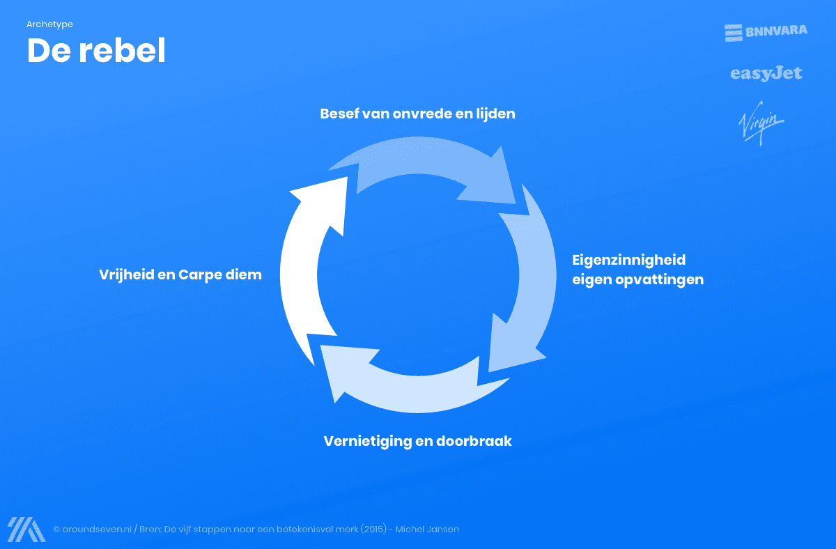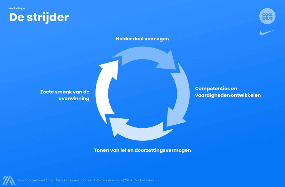 Let op! Waarschijnlijk passen er meerdere archetypen bij jullie organisatie. Het is belangrijk er toch één centraal te stellen omdat je anders onvoldoende richting kan geven aan je merk. Meerdere archetypen zouden zowel intern als extern voor ruis zorgen die de kracht van je merk flink onderuit kan halen.